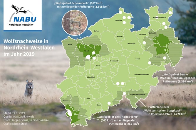 Mit Wirkung zum 02.07.2019 hat das Landesamt für Natur, Umwelt und Verbraucherschutz des Landes Nordrhein-Westfalen (LANUV) das Wolfsgebiet “Eifel-Hohes Venn” ausgewiesen. Dies geschah aufgrund mehrerer Nachweise aus dem Hohen Venn in Belgien, die seit Mitte 2018 eingegangen waren und dem genetischen Nachweis in der Gemeinde Monschau, in den Monaten April und Mai 2019.