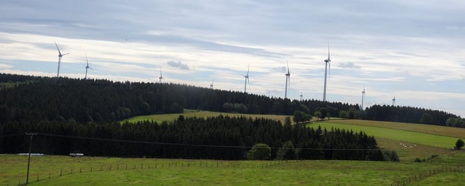 Blick auf den Windpark Dahlem I-III, zwischen Schnorrenberg und Berk.