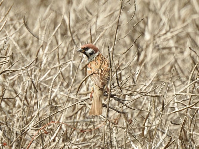 Bei den Bluthänflingen und Feldsperlingen ist die Population deutlich gewachsen. Überall auf den abgeernteten Feldern waren sie in großer Anzahl emsig mit der Futtersuche beschäftigt.