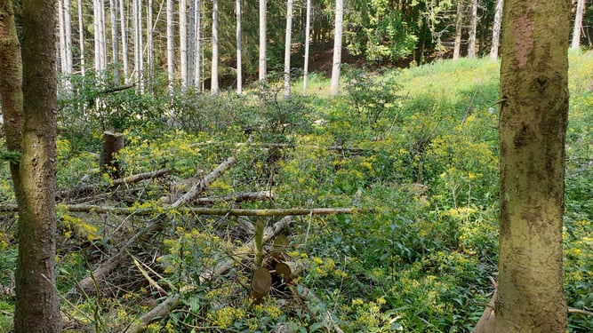 Eine vielfältige Fläche mit Totholz und Laubbaum-Verjüngung