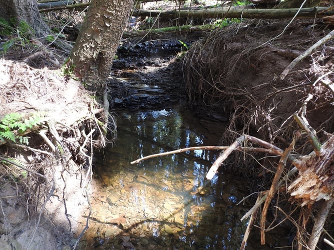 Ausschlaggebend war der kleine Bach mit Namen “Kockesbach”, der hälftig in der Windwurffläche einen guten Eindruck vermittelt und in der Fichten-Monokultur dringend Hilfe benötigt.