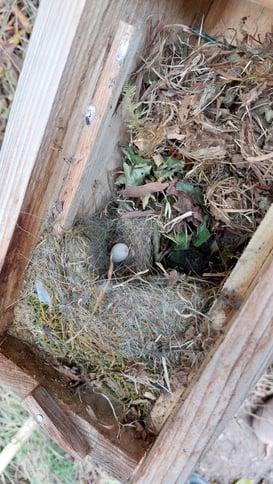 Nest einer Kohlmeise mit einem nicht bebrütetes Ei.