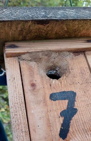 In einem Fall hatten Insekten (Hornissen?) das Holz innen teilweise abgetragen und geglättet. Wir fanden dort auch Chitinreste. Die Einfluglöcher waren z.T. stark vergrößert (Specht?) und werden demnächst durch Metallplatten gesichert.