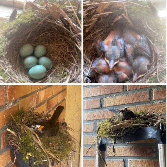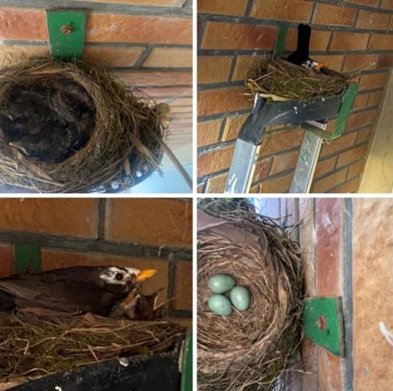 „Lieber Nabu Euskirchen, im März durften wir zum ersten Mal ein Amselnest mit drei Eiern in unserem Garten bzw unter unserer Terrasse beobachten.