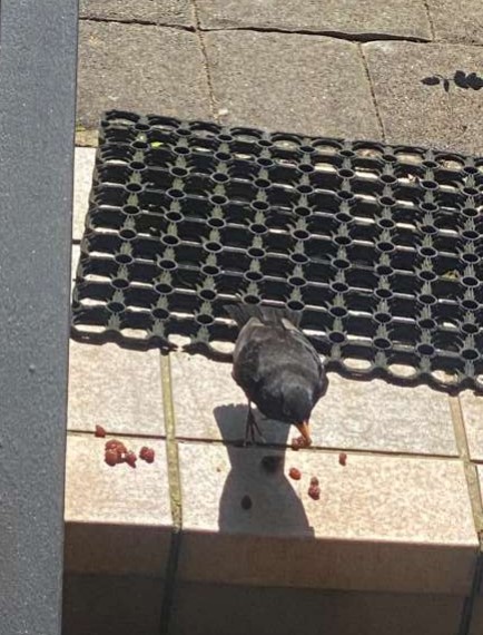 Die Amsel Mama ist eine besondere Amsel, sie hat einen Gendefekt (Leuzismus)