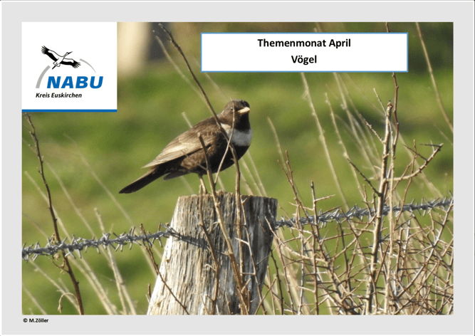 Im Rahmen des 70-jährigen Jubiläums des NABU Euskirchen im Jahr 2024 befassen wir uns in jedem Monat mit einem neuen Schwerpunktthema des Naturschutzes. Den Monat April widmen wir ganz den Vögeln.
